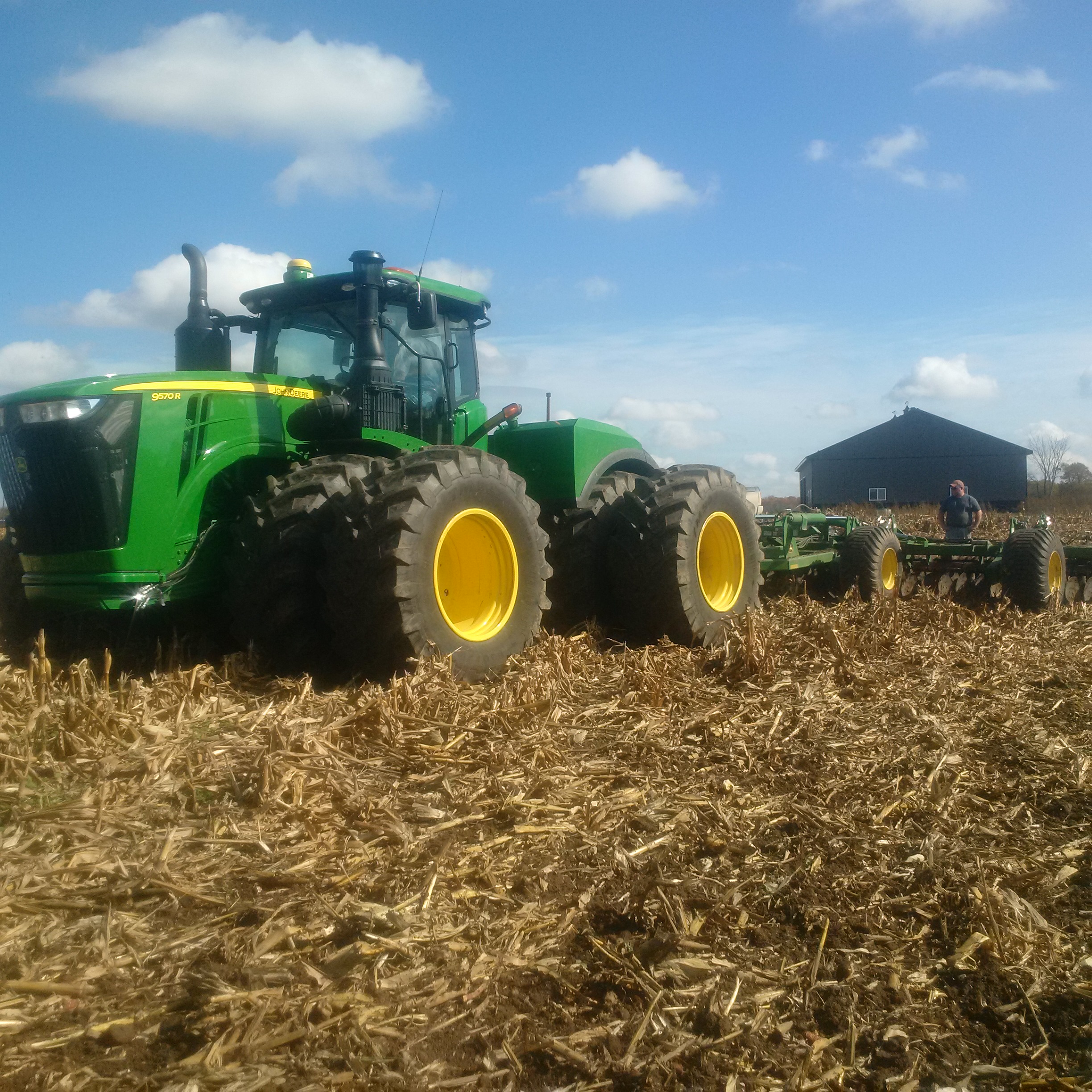 Big green tractor pulling The new primary tillage machine!